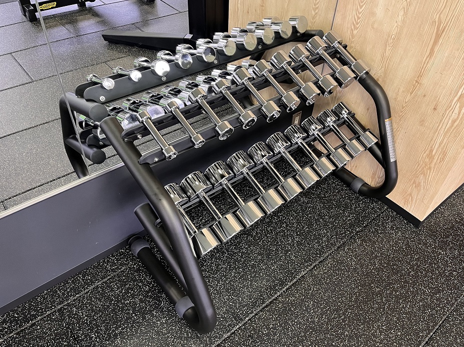 この度、新しいダンベルを導入いたしました。重量は1~10kgまで取り揃えております。トレーニングにご活用ください。